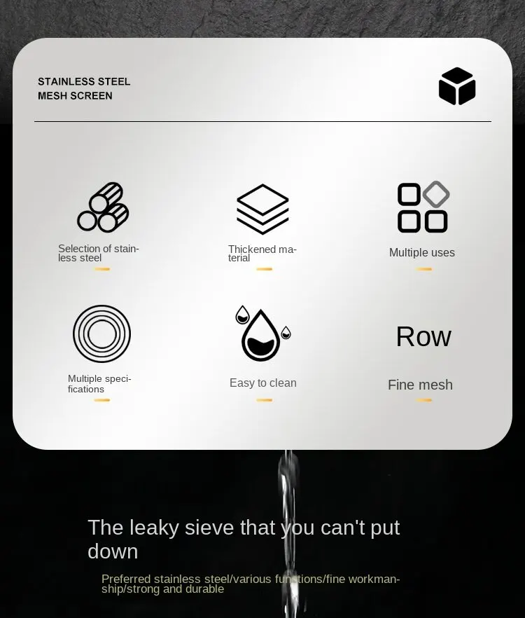 • Fine Mesh Strainers :Featuring a fine mesh design, these strainers effectively separate even the smallest particles from your food, ensuring you get the purest and highest quality ingredients.