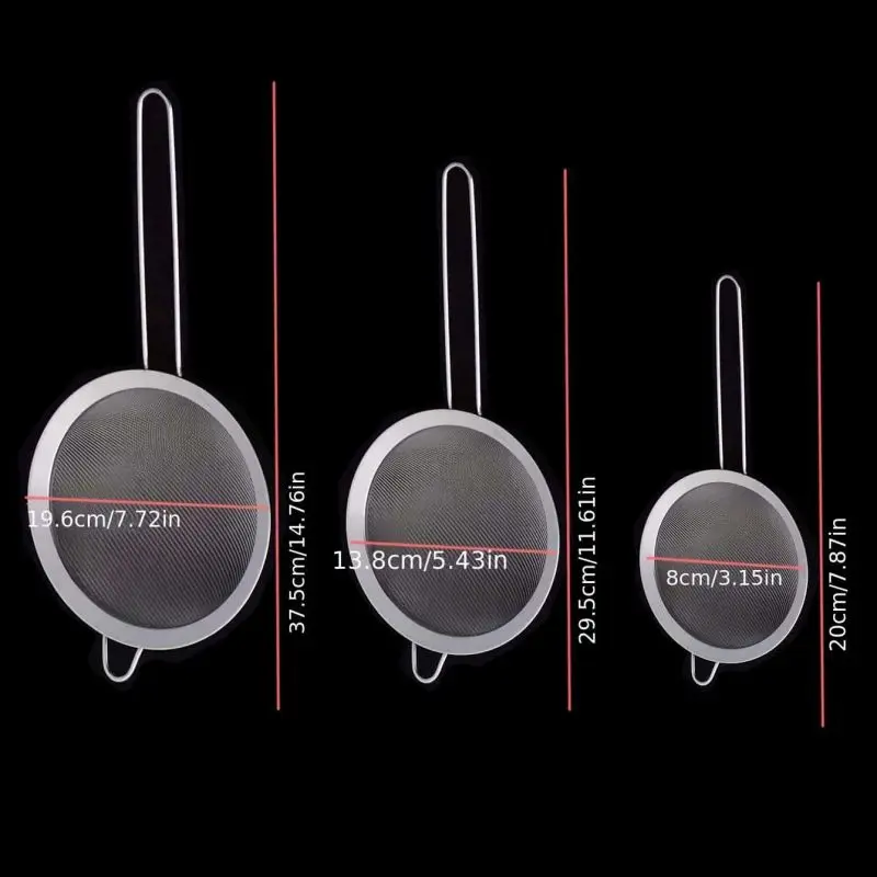 • Eco-Friendly Stainless Steel :Crafted from eco-friendly stainless steel, this set of strainers is not only durable but also environmentally responsible, making it a perfect kitchen tool.